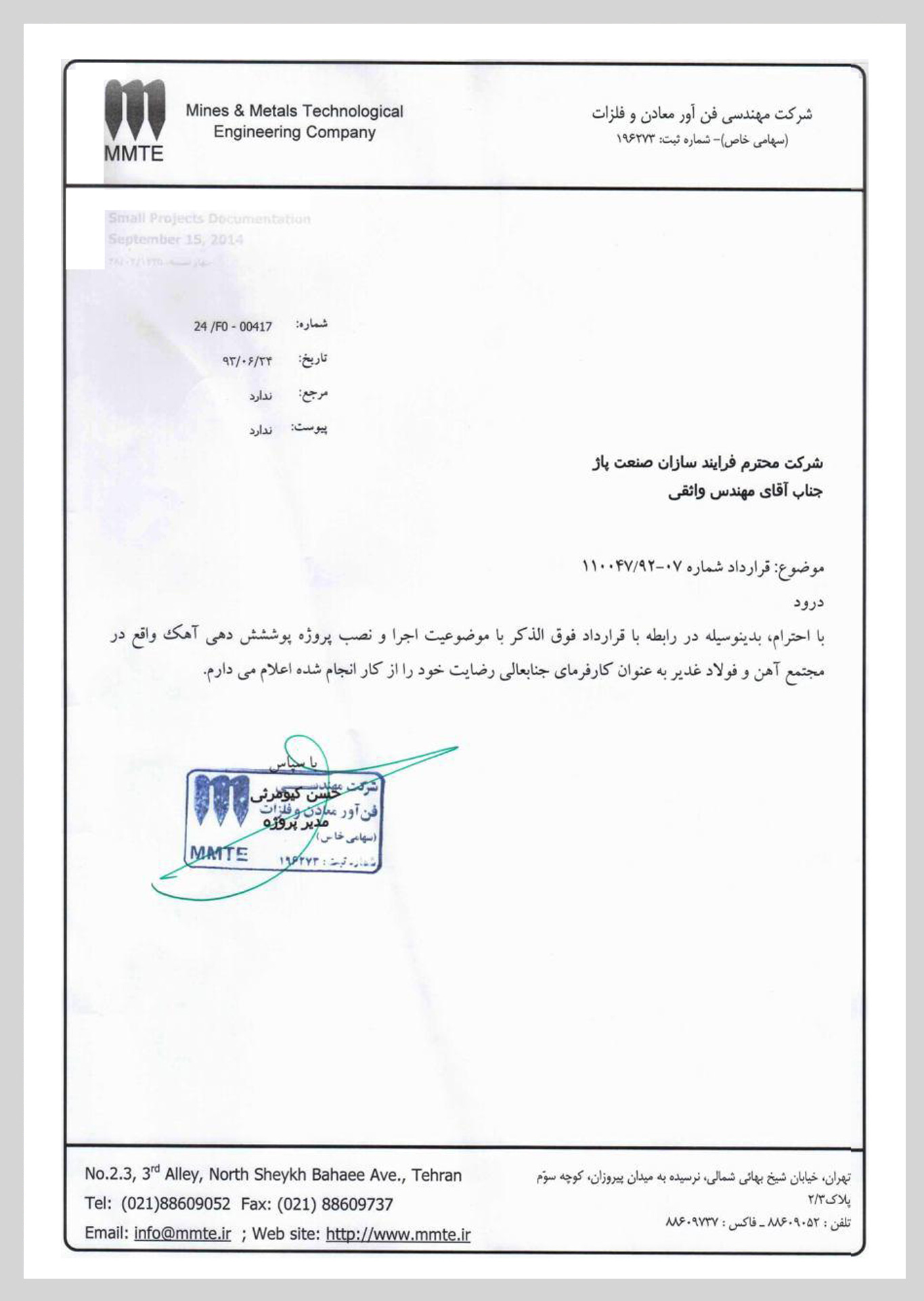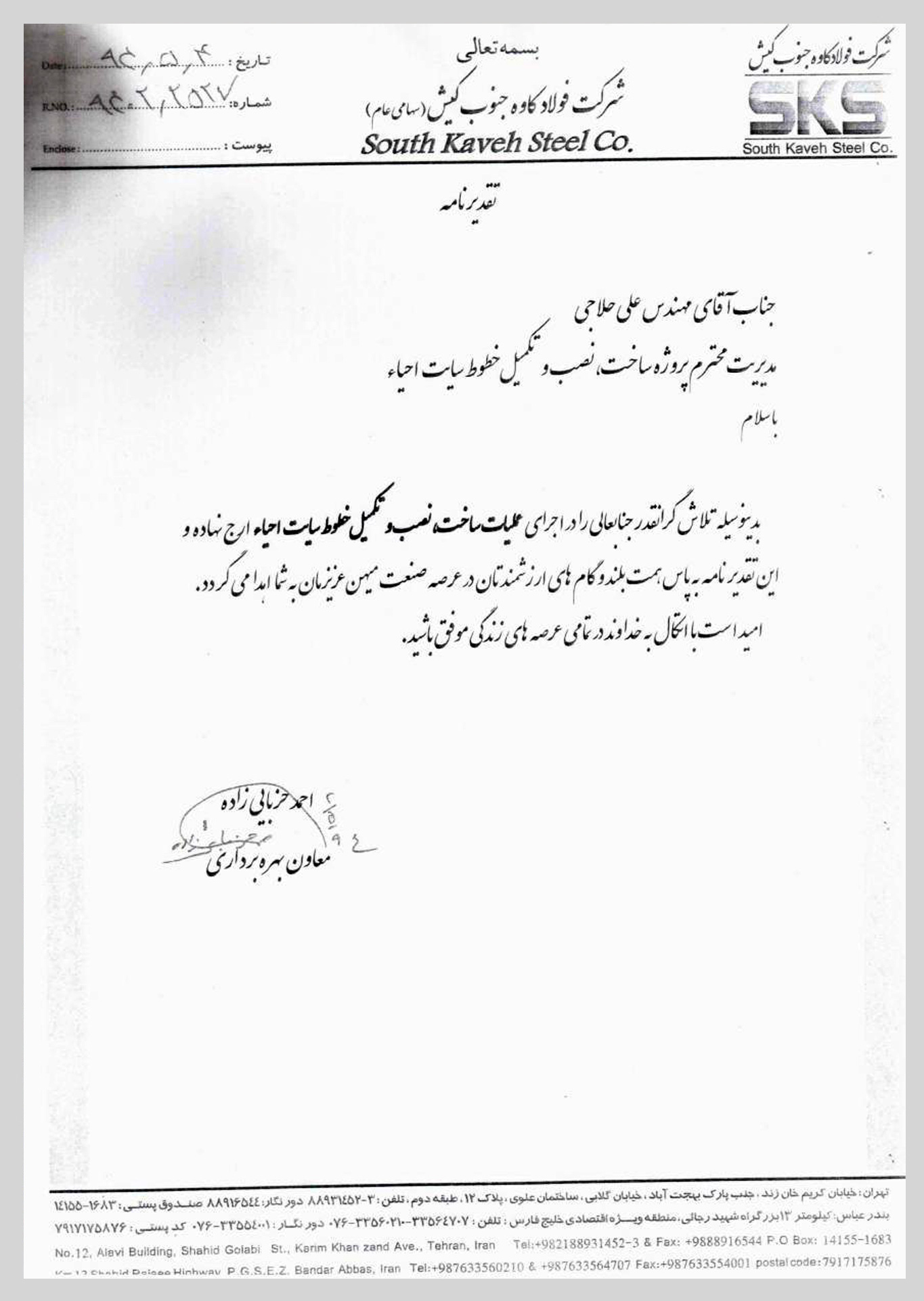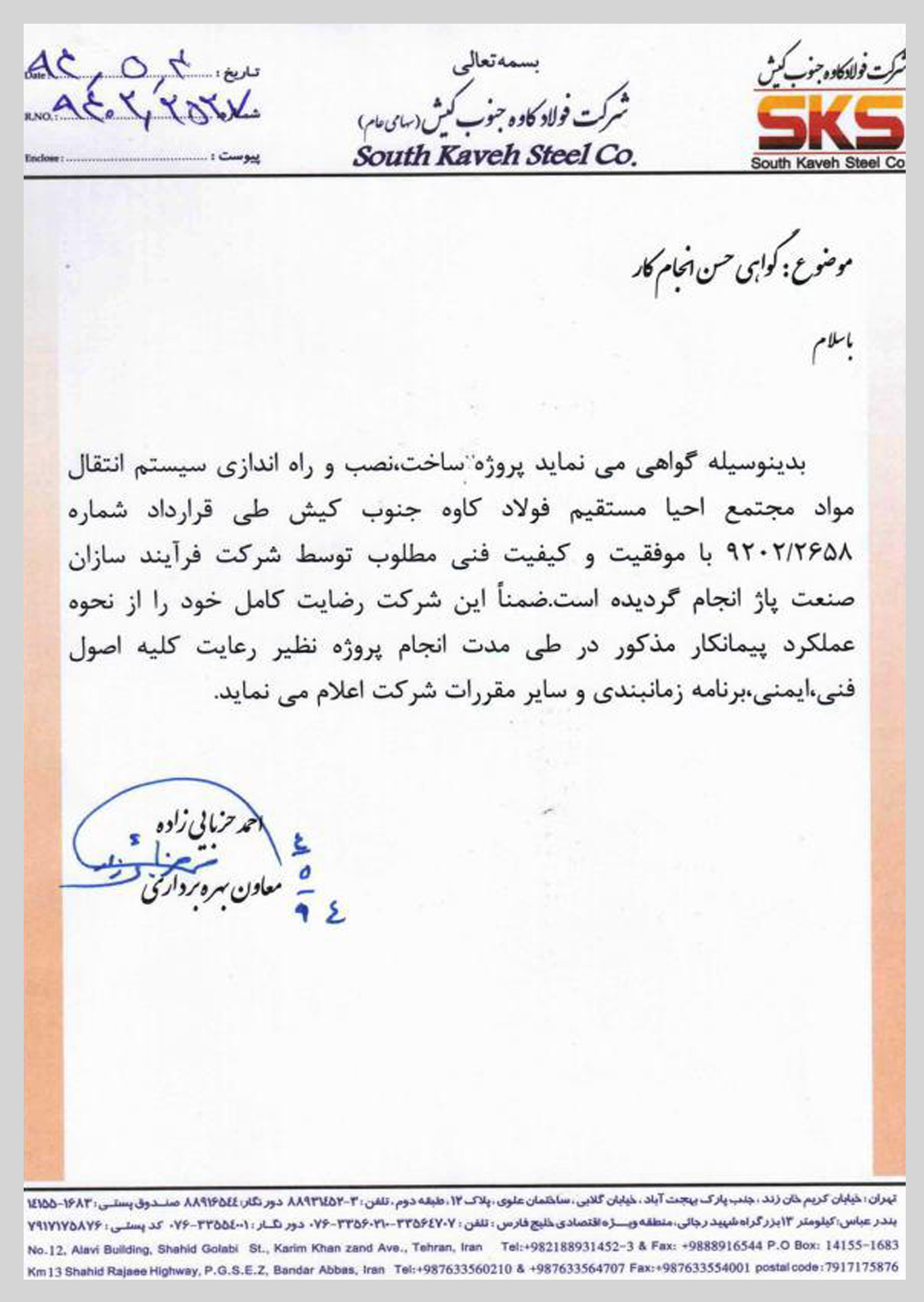 گواهی نامه های دریافتی شرکت فرایندسازان صنعت پاژ